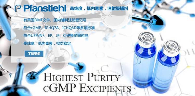 “熱烈祝賀Pfanstiehl的注射級甘氨酸Glycine(G-140)喜獲CDE登記號F20250000403, 這是Pfanstiehl產品獲得的第18個CDE登記號!”甘氨酸在醫藥輔料制劑中應用廣泛,, 可作為緩沖劑,增溶劑,穩定劑等,具有諸多優勢。Pfanstiehl秉承一貫高品質理念,為滿足全球生物制藥行業對于高品質甘氨酸的需求,隆重推出的注射級甘氨酸Glycine (G-140), 具有超高純度,超低內毒素,超低金屬殘留的特點,單獨檢測29種金屬離子,并且新增DNA,RNA,DNA酶,RNA酶和脂肪酶,亞硝酸鹽等多項質量指標的檢測,符合多國藥典規定(USP, EP, BP, JPE, ChP),可用于生物治療性藥物和疫苗的生產。產品信息:· 產品名稱:Glycine, High Purity, Low Endotoxin, Low Metals, USP, EP, BP, JPE, ChP (G-140)· 中文名稱:甘氨酸· 分子式:C2H5NO2· 分子量:75.07 g / mol· CAS號:56-40-6· 產品貨號:G-140產品特點: · 超高純度,超低內毒素,超低微生物含量,超低金屬雜質殘留· 質量指標新增DNA,RNA,DNA酶,RNA酶,脂肪酶和亞硝酸鹽檢測· 符合多國藥典:USP, EP, BP, JPE, ChP· 符合ICH Q3D標準· 符合GMP標準· 已獲DMF和CDE登記號 產品應用:· 緩沖劑· 穩定劑· 增溶劑如果您對Pfanstiehl注射級別Glycine G-140感興趣,歡迎聯系Pfanstiehl 中國區代理商北京西美杰科技有限公司獲得如下詳細的產品概況說明文件和測試樣品。Pfanstiehl Inc.最新產品系列如下,歡迎聯系北京西美杰科技有限公司獲取100g裝免費樣品。北京西美杰科技有限公司為Pfanstiehl中國代理,為客戶提供完善的技術支持與售后服務。歡迎撥打西美杰客服電話400-050-4006或者登陸網站www_xmjsci_com.copy168.cn了解更多信息。 更多>